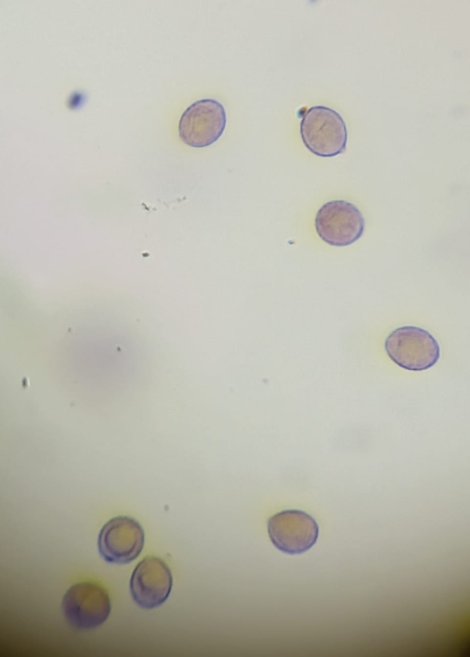 הנבגים כמעט כדוריים, גרגיריים, חומים, גודלם 7-9 על 7-6,5 מיקרון