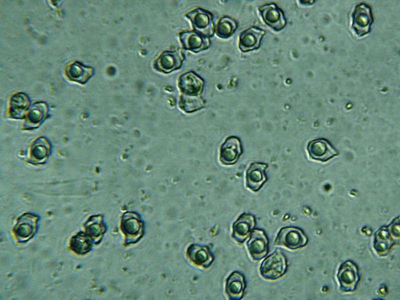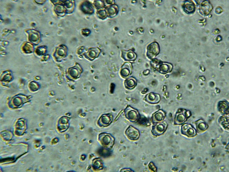 אבקת הנבגים חומה-ורדרדה, גודלם 6-10*9-14 מיקרון.