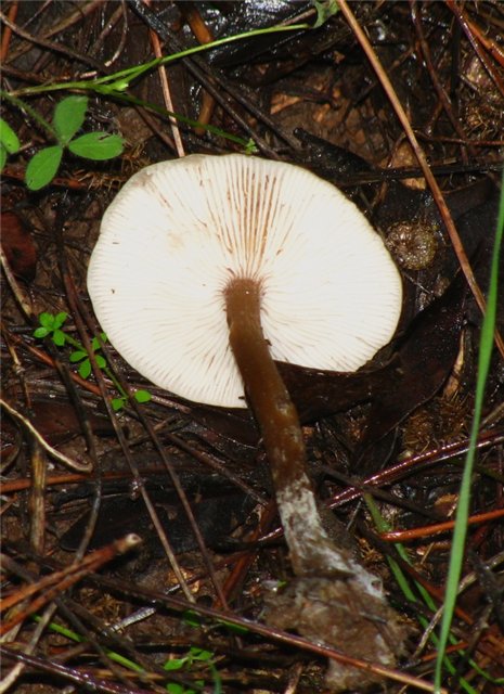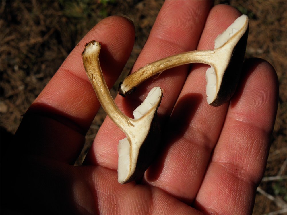 בשר הפטרייה לבן, חום במקצת בבסיס הרגל.