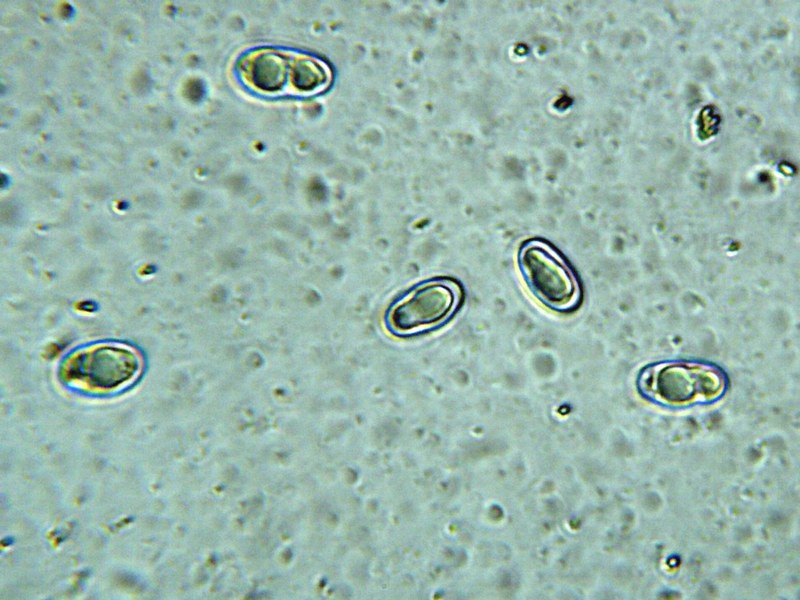 הנבגים אליפסואידיים, חלקים, מכילים 1-3, בדרך כלל שתי טיפות שמן אשר לפעמים מתלקדות עם הזמן, חסרי צבע, גודלם 9-7*22-14 מיקרון.