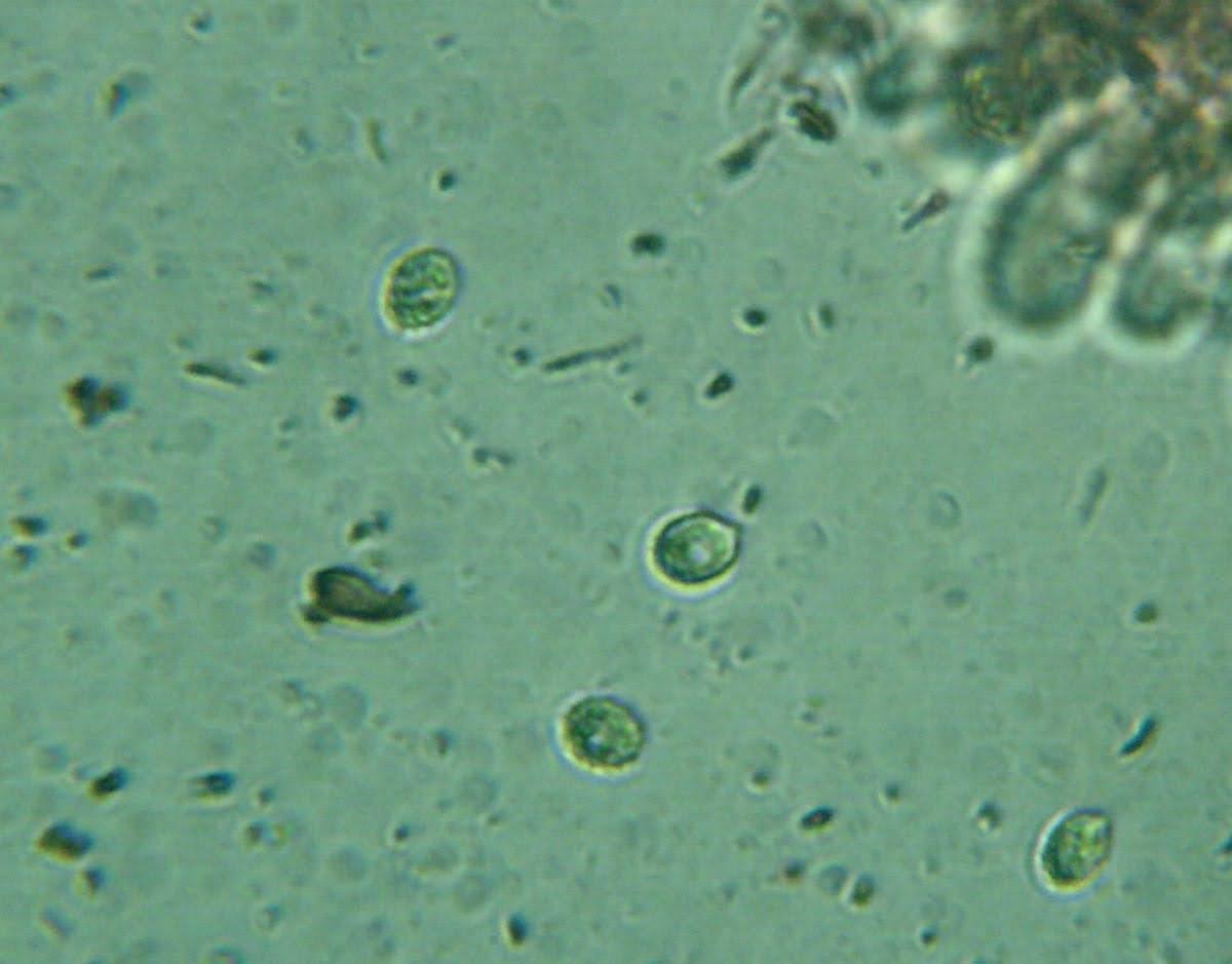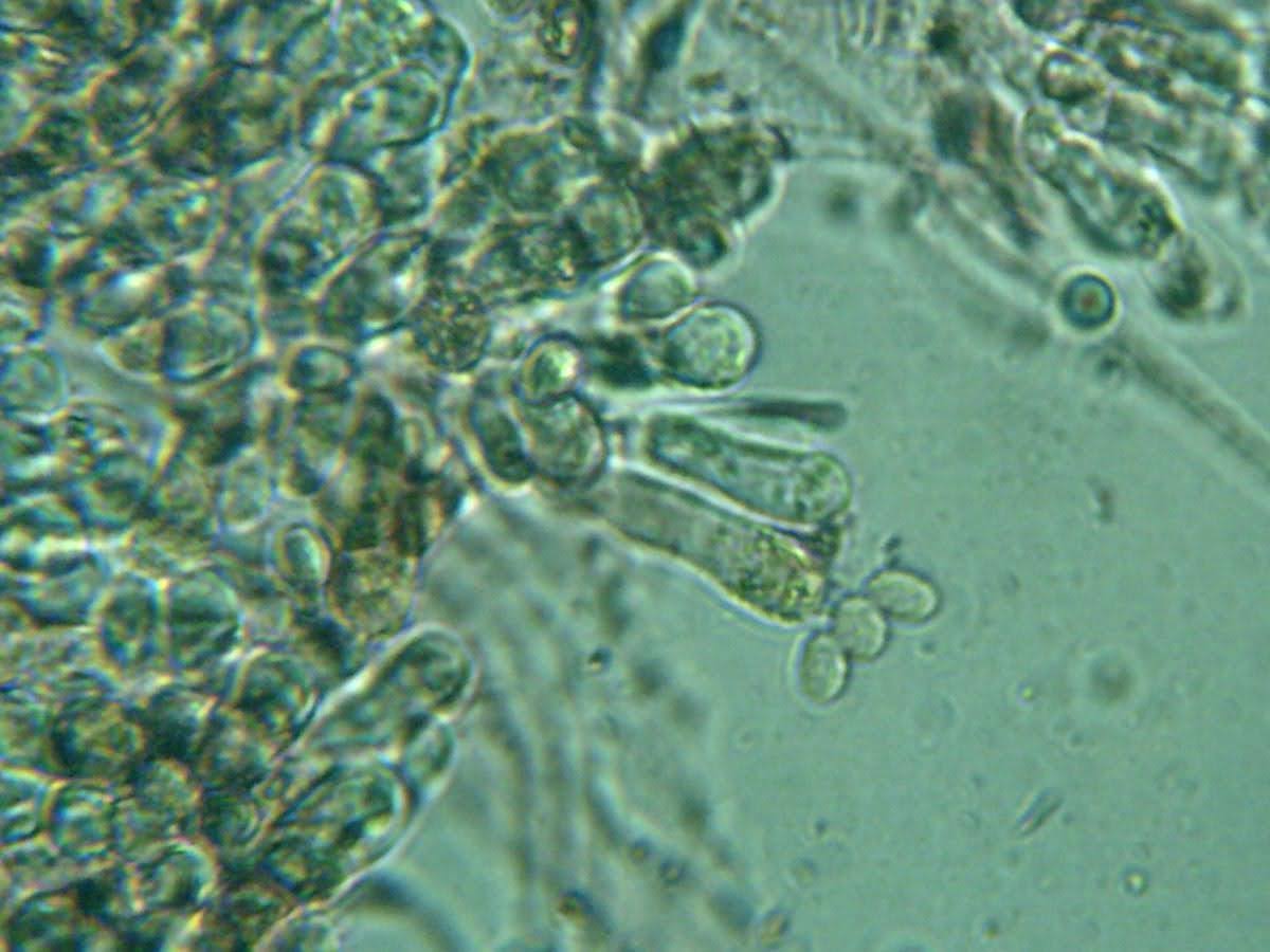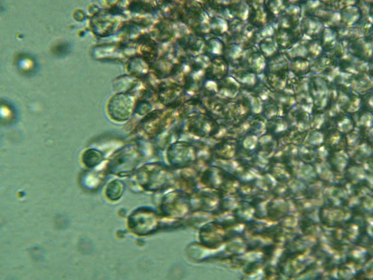 הנבגים אליפסואידיים-רחבים, קוצניים במקצת, גודלם 4,8-6*5,8-8 מיקרון.