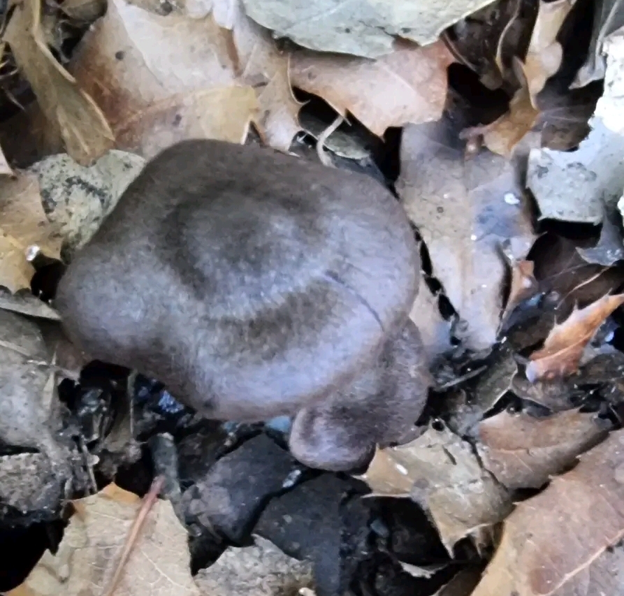 פטריית דפים עדינה עם כובע קמור עד שטוח עם פיטם רחב ופחוס במרכזו, קוטרו מגיע ל-4-5 ס"מ, פניו חלקים, מכוסים בסיבים דקים ופחוסים עם ברק משיי, צבעו סגול-חום-כהה או חום-שחור עם גוון סגול או כחול כהה.