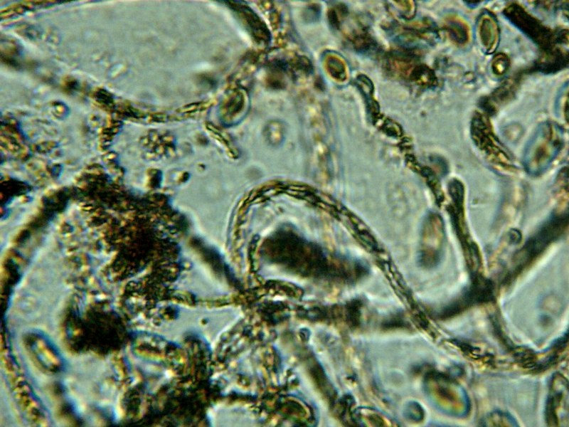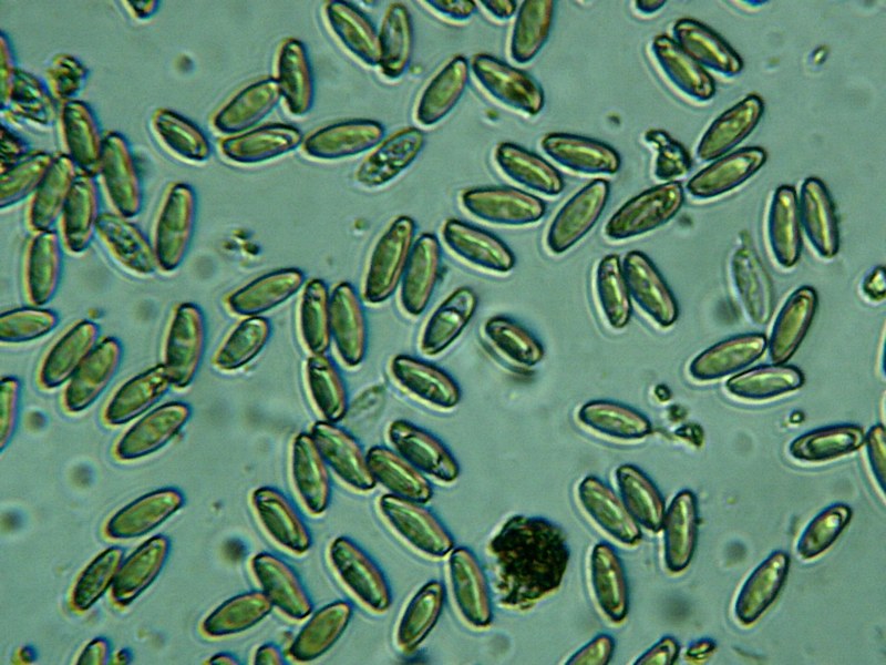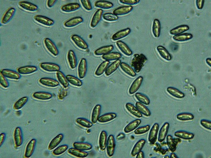 אבקת הנבגים חומה-זיתית. הנבגים דמויי כישור, מאורכים, 11-15*4,5-5,5 מיקרון.