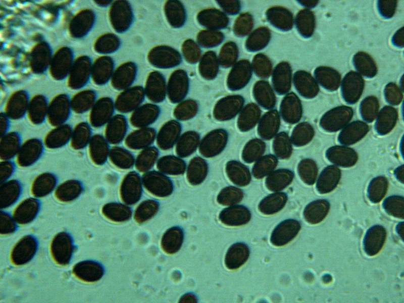 הנבגים אליפסואידיים, ביצתיי, חלקים, חומים, בעלי פתח נביטה, וגודלם 4,5-6 על 7-10 מיקרון