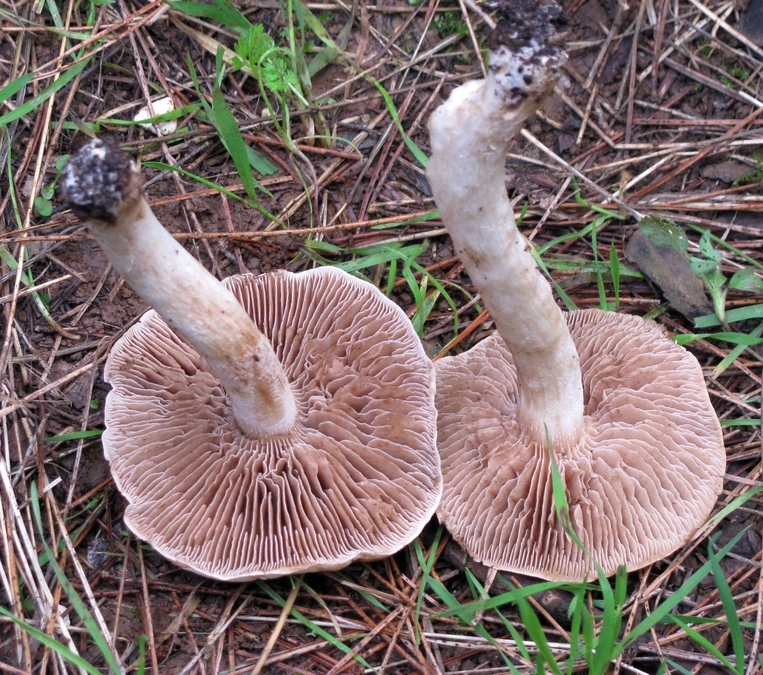 הדפים דקים, צפופים, רחבים, בעלי דפי ביניים, יושבים עם מפרץ, צבעם חום-ורדרד, קצותיהם בהירים יותר, לבנבנים.