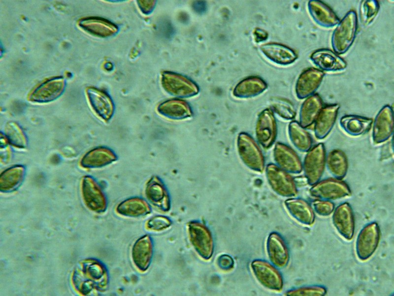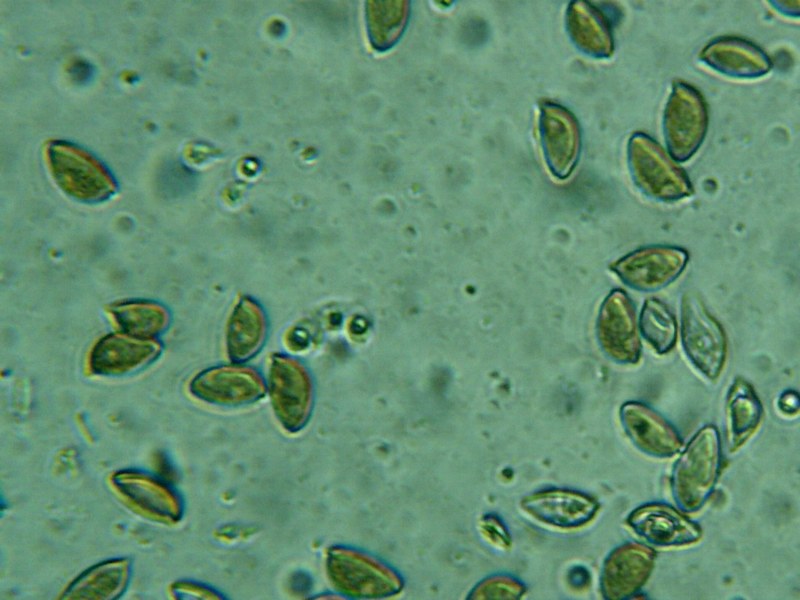אבקת הנבגים חומה. הנבגים דמויי שקד, מאורכים, גדולים יחסית, גודלם 15-17*6,25-7,5 מיקרון.