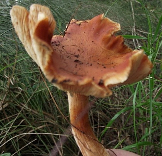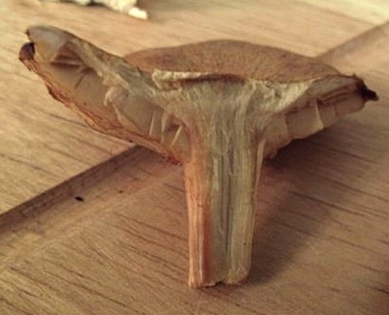 הבשר לבנבן או צהבהב, בבסיס הרגל חלודי, ללא ריח, טעמו מריר.