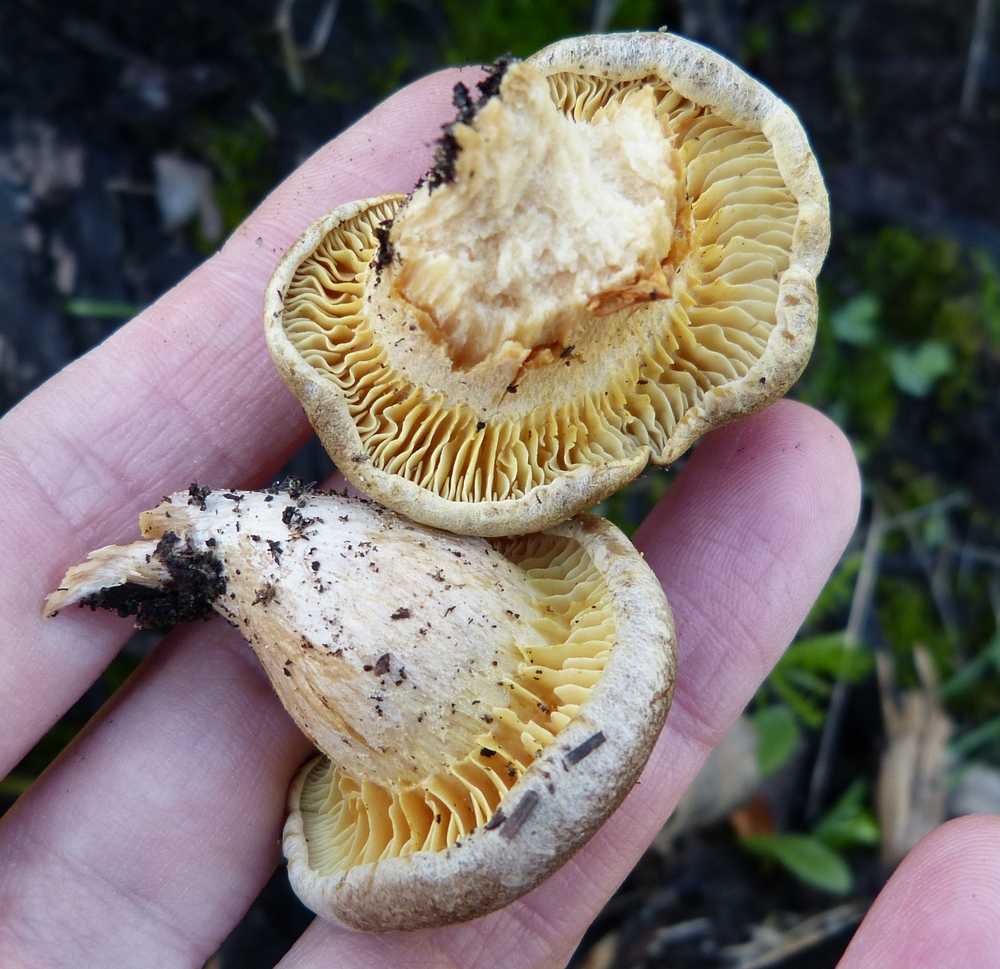 הדפים נוגעים או בעלי מפרץ, צפופים או בעלי צפיפות בינונית, צבעם בתחילה לבנבן־צהבהב, אחר כך צהוב, חלודי, לעתים זרועים כתמים חומים־חלודיים.