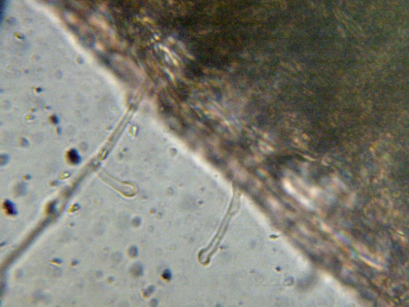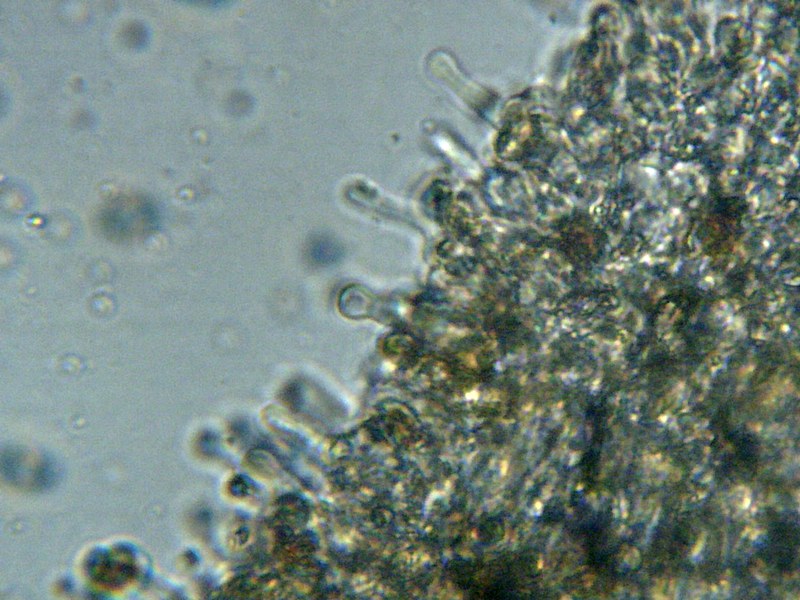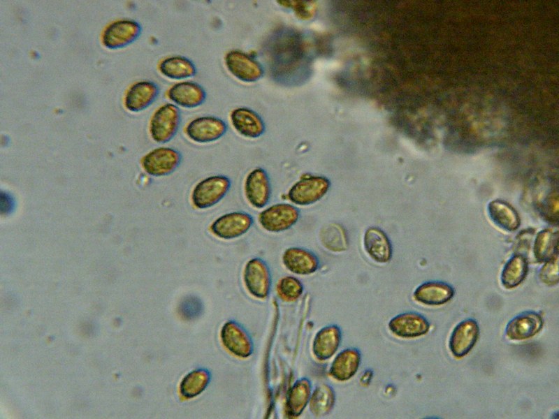 אבקת הנבגים חומה, חומה-חלודית.הנבגים אליפסואידיים, דמויי-שקד, מחוסוסים-גרגיריים, צבעם צהוב-חלודי, גודלם 7-9*4-6 מיקרון.