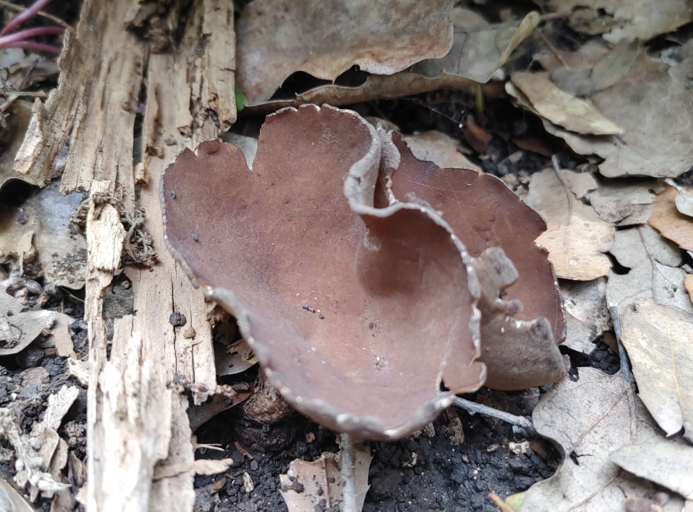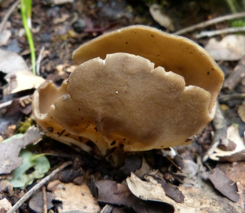 גוף הרביה מורכב מכובע ורגל, גובהו 2-7(12) ס"מ, קוטרו 2,5-4(8), הרגל בדרך כלל פי שתיים יותר קצרה מהכובע. הכובע דמוי כוסית ונפרס עם הזמן, שוליו לא סדירים, גליים. צבעו החיצוני חום או חום-חיוור, בהיר יותר בקרבת הרגל, לבדי או קשקשי במקצת, בעל קפלים וקמטים בצורת תלמים. ההינומית חלקה, צבעה חום-צהבהב, חום-ערמוני או חום-אדמדם, לפעמים בגוון לילכי.
