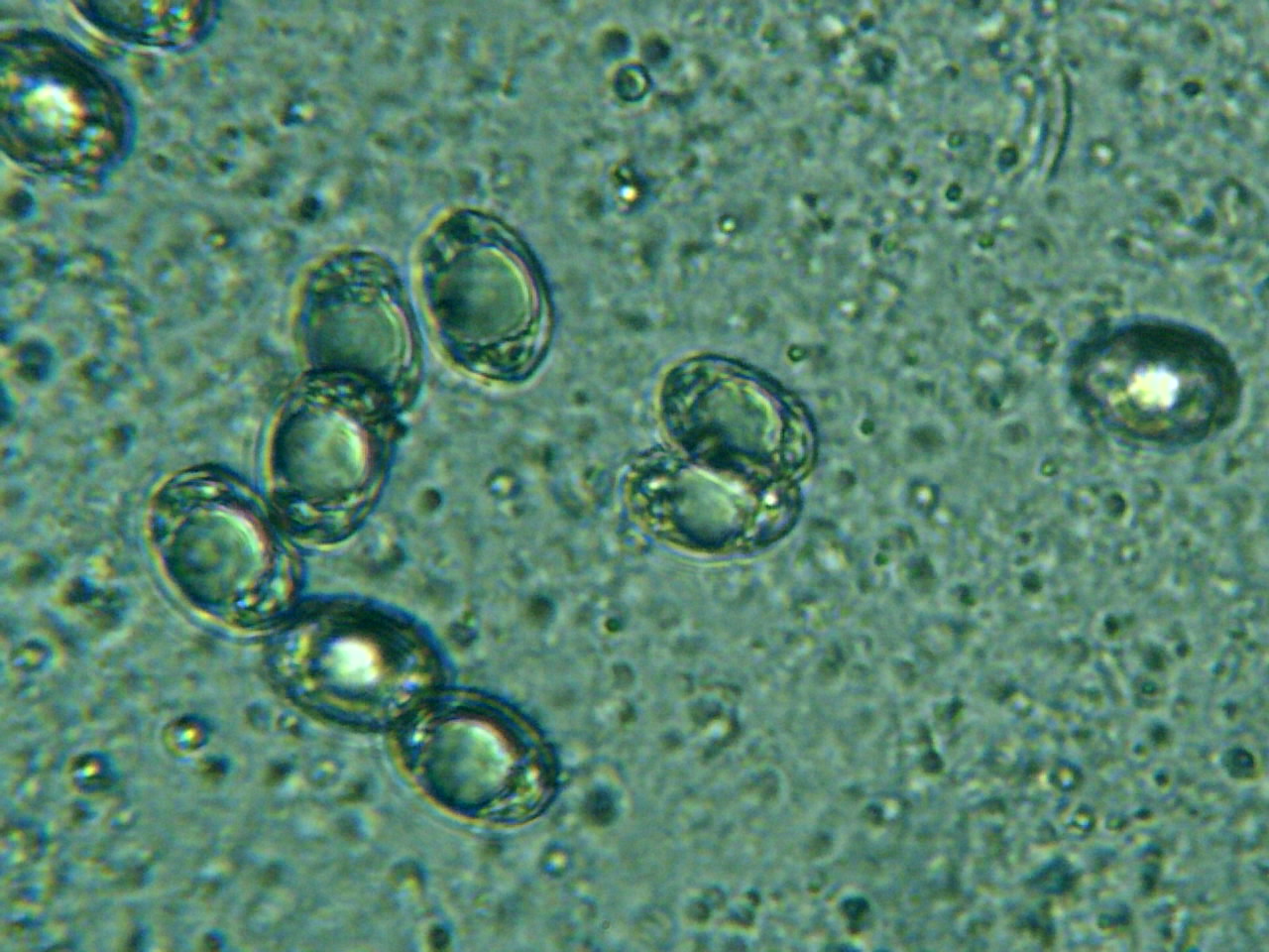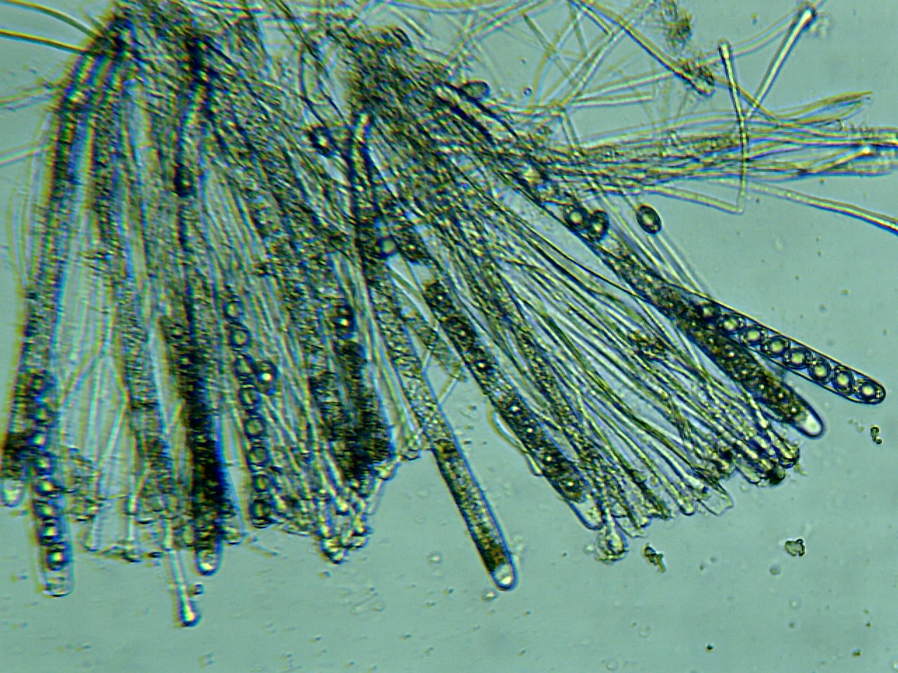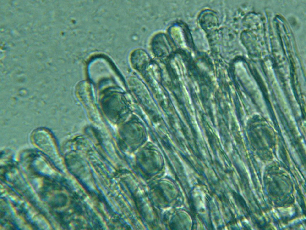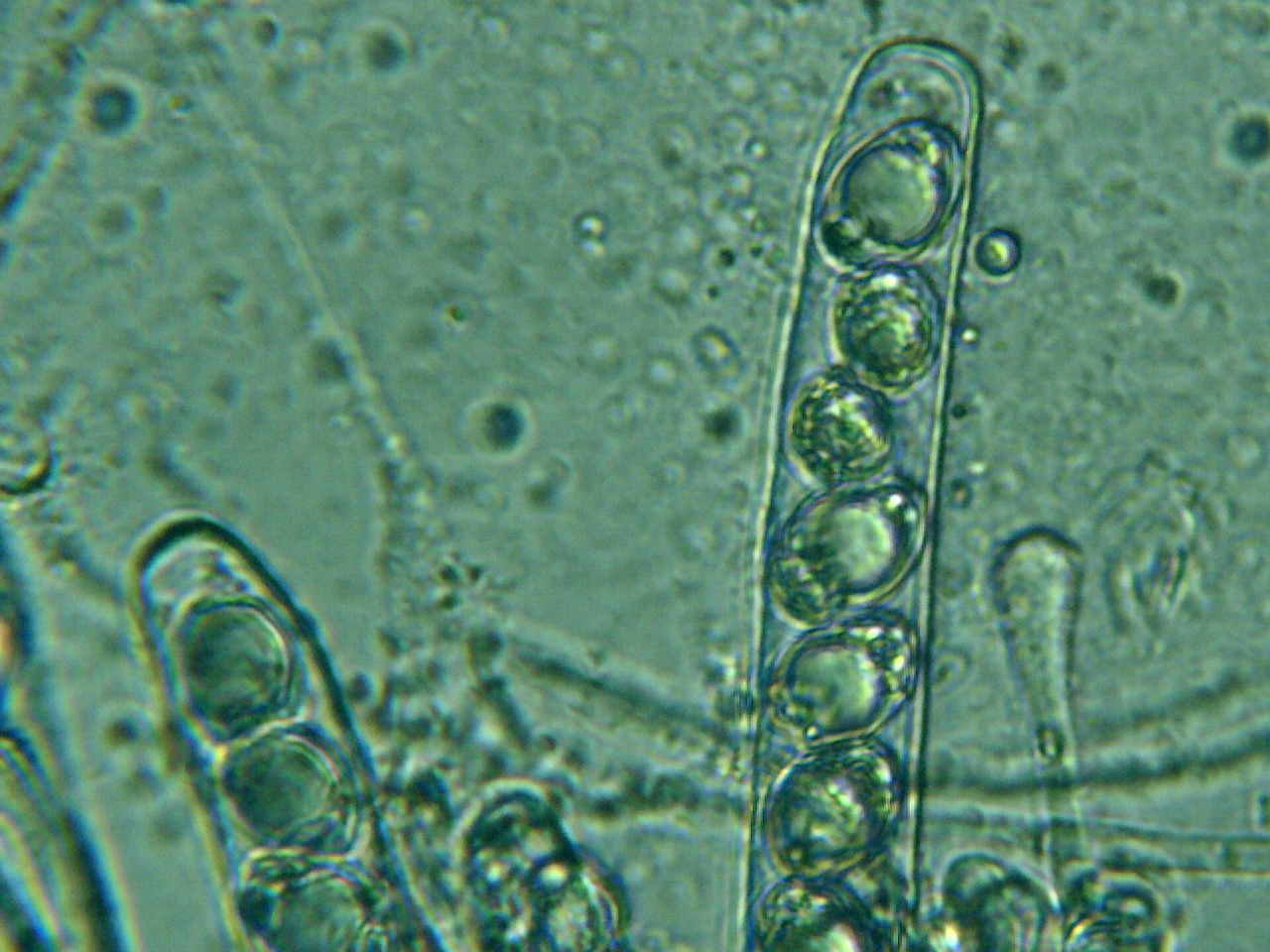הנאדית דמויית צינור, בעלת 8 נבגים. אבקת הנבגים לבנבנה.