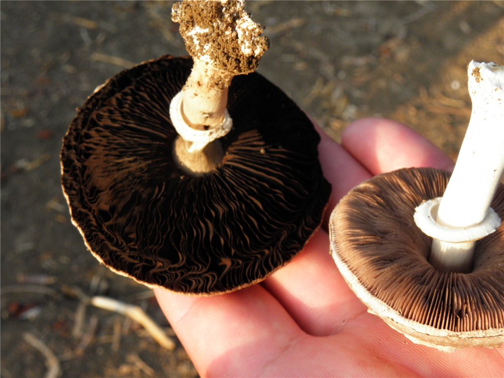 הדפים חפשיים. צפופים, צבעם בתחילה בז', ורוד-אפרפר, כצבע בשר, עם הזמן הופך לחום-שוקולד.