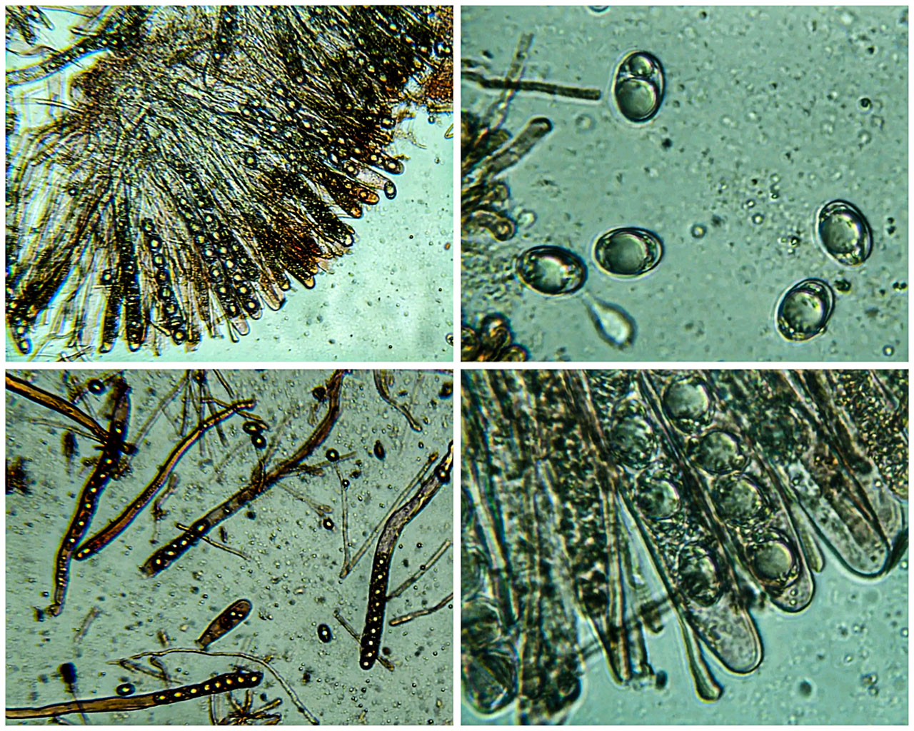 הנבגים אליפסואידיים, חלקים, עם טיפת שמן. אבקת הנבגים לבנה.