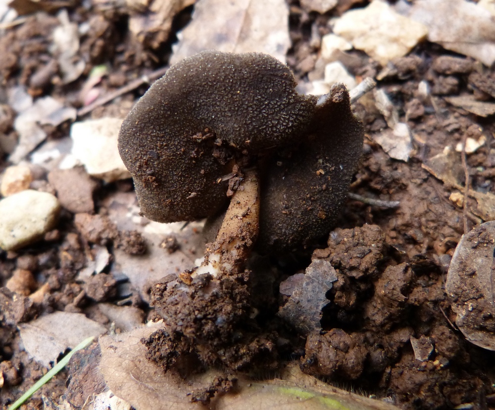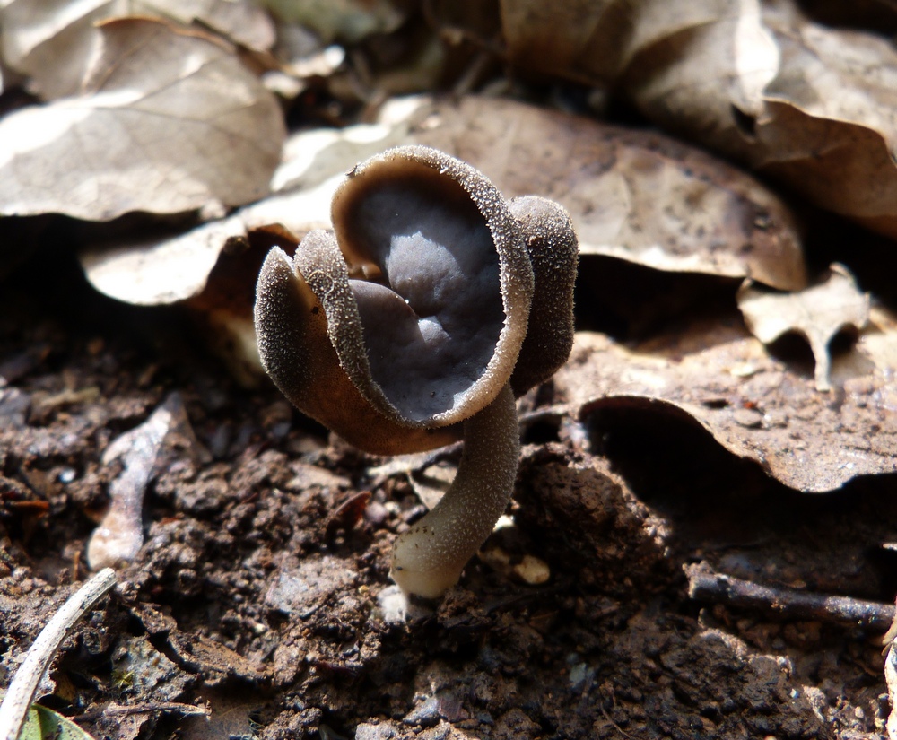 הרגל גלילית, מתרחבת מעט בקרבת בסיסה, גובהה 3-4 ס"מ, עוביה 0,5-1 ס"מ, צבעה שחור, חום-כהה או חום-אפור, פניה חלקים, גרגיריים או צמריים.