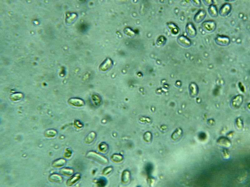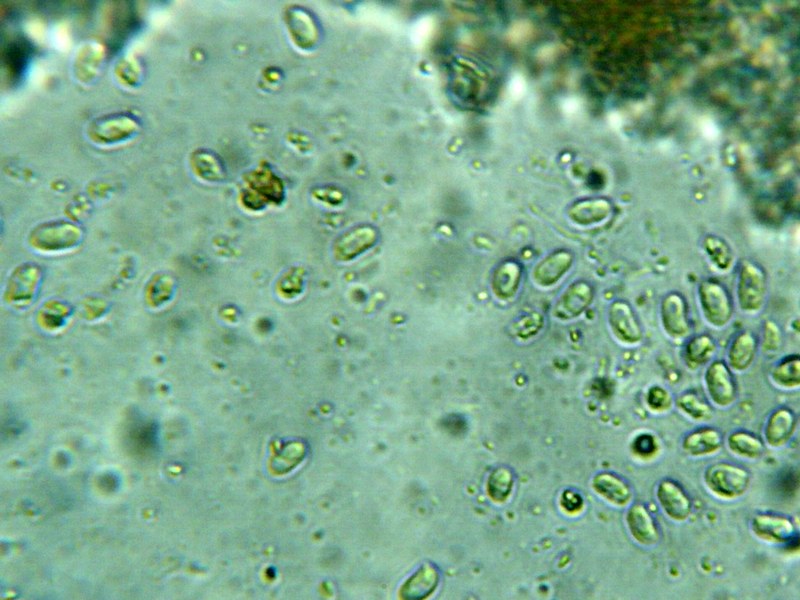 אבקת הנבגים בצבע לבן. הנבגים ביצתיים, חלקים, חסרי צבע, גודלם 4-5*5-9 מיקרון.