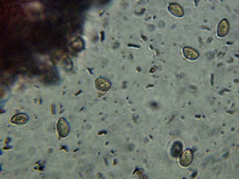 אבקת הנבגים חומה. הנבגים אליפסואידיים, חלקים, צהובים-חלודיים, גודלם 8-11,5*5-7 מיקרון.