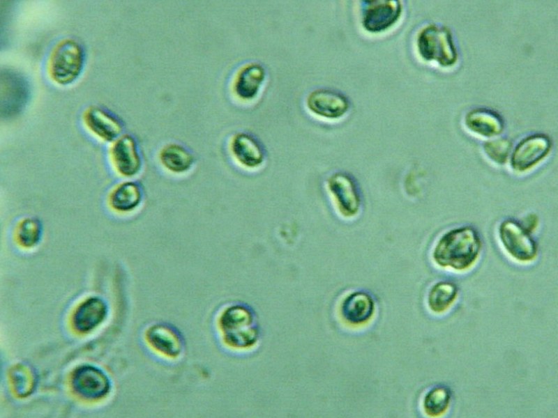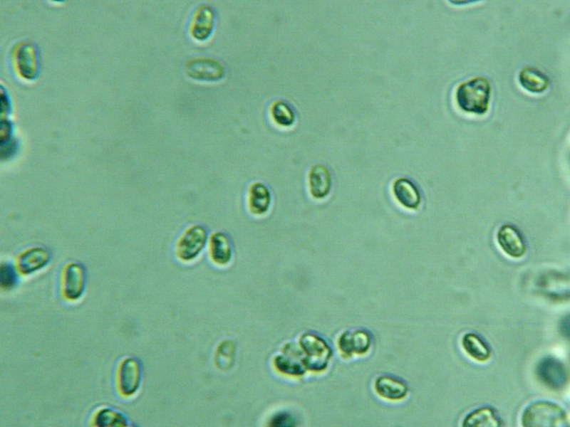 אבקת הנבגים לבנה. הנבגים אליפסואידיים, חלקים, חסרי צבע, בעלי דפנות עבים, ללא פתח נביטה. גודלם 6-9*(3)4-5 מיקרון.