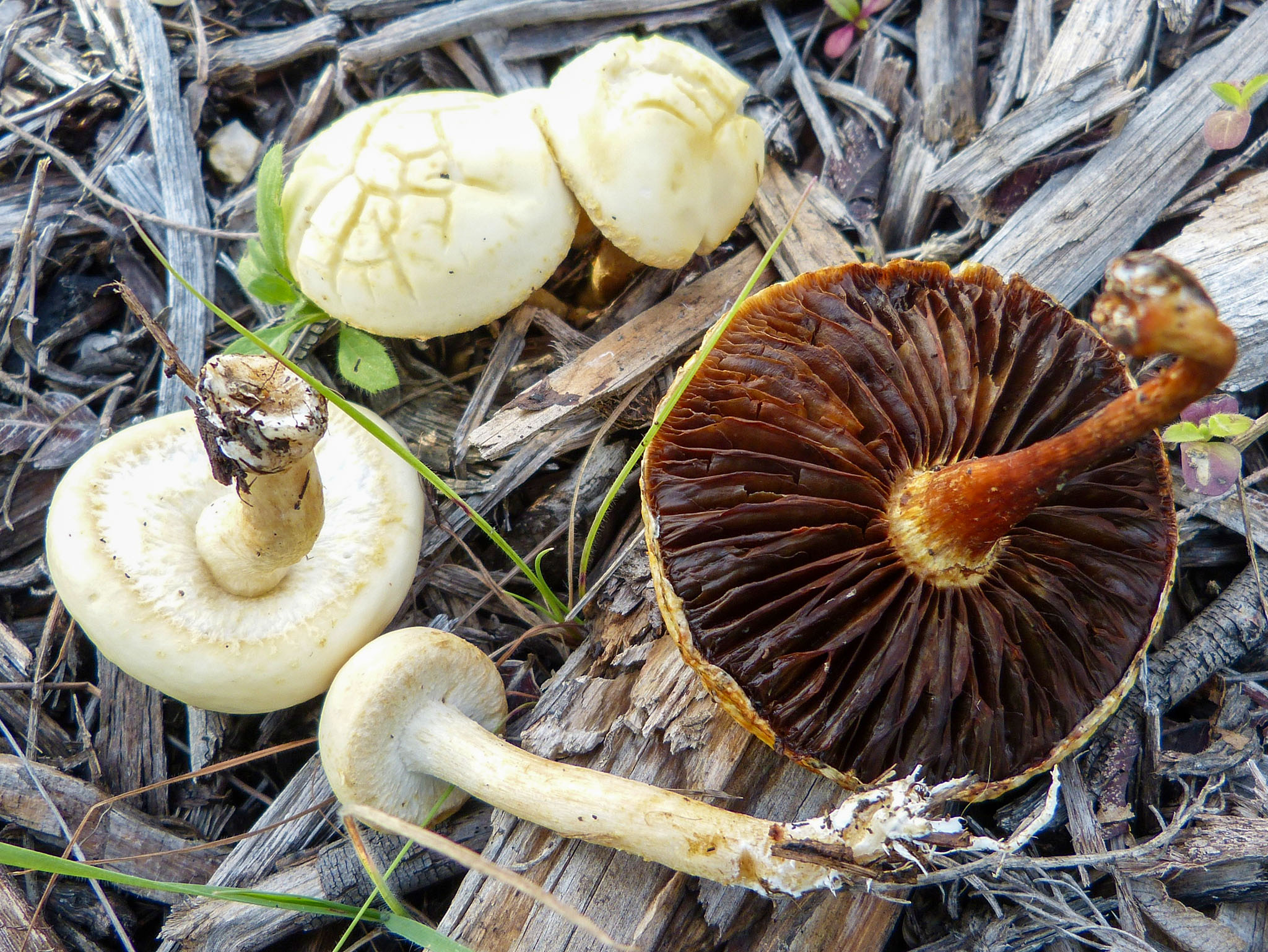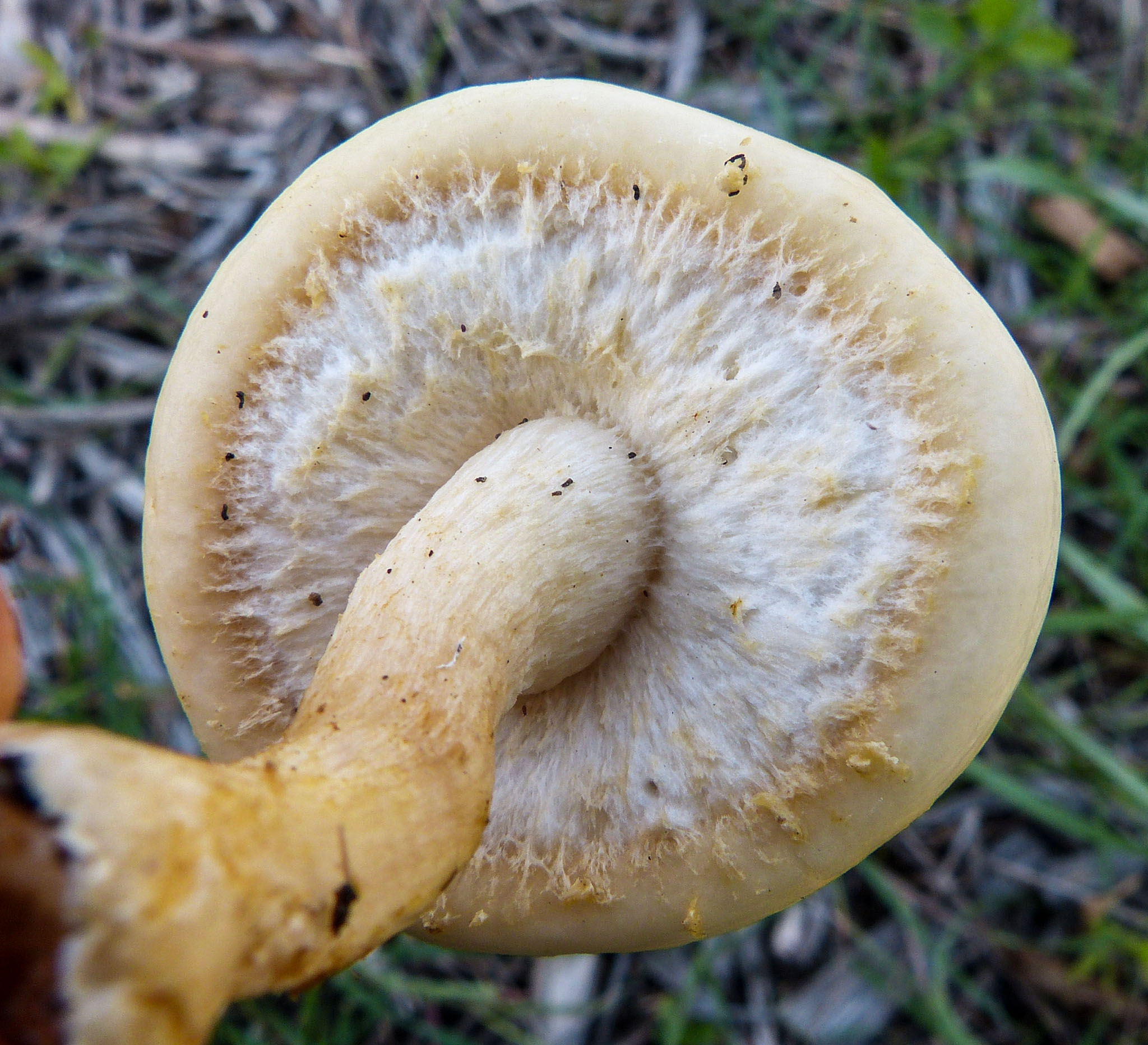 הדפים יושבים, צפופים, צבעם קרם, אפרפר, לאחר-מכן חום, חום-צהבהב או חום-אדמדם.