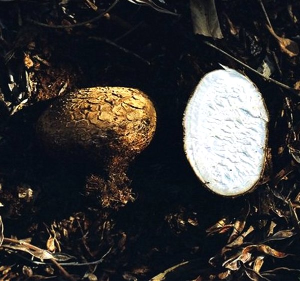 גוף הרביה הצעיר לפעמים מתפתח לא עמוק מתחת לאדמה או עד חציו באדמה, דמוי כדור שלעתים פחוס במקצת.