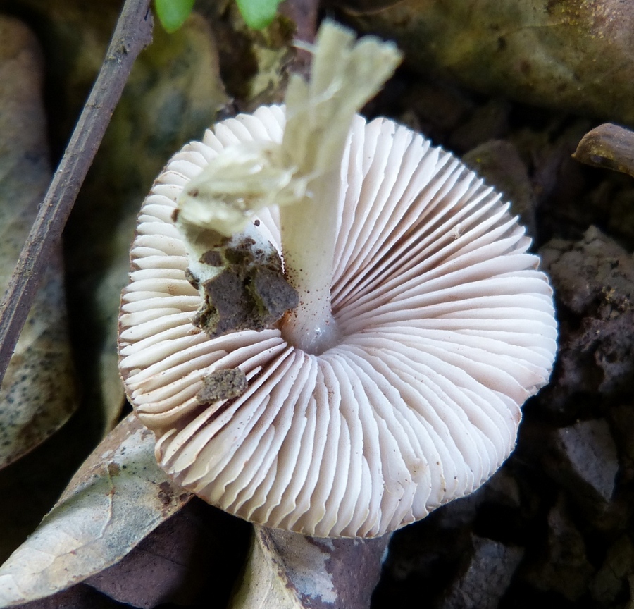 הדפים חפשיים, צפופים, בעלי דפי ביניים, צבעם בתחילה לבן ולאחר-מכן הופך לורדרד עד ורדרד-חום-בהיר, קצותיהם לבנבנים.