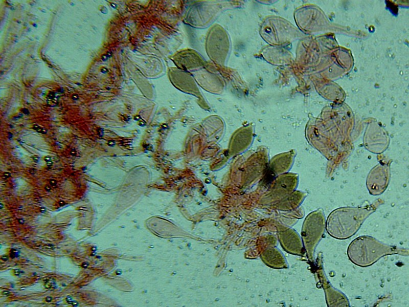 אבקת הנבגים ורודה. הנבגים כדוריים כמעט, חלקים, ורודים וגודלם 5-6*6-7 מיקרון.