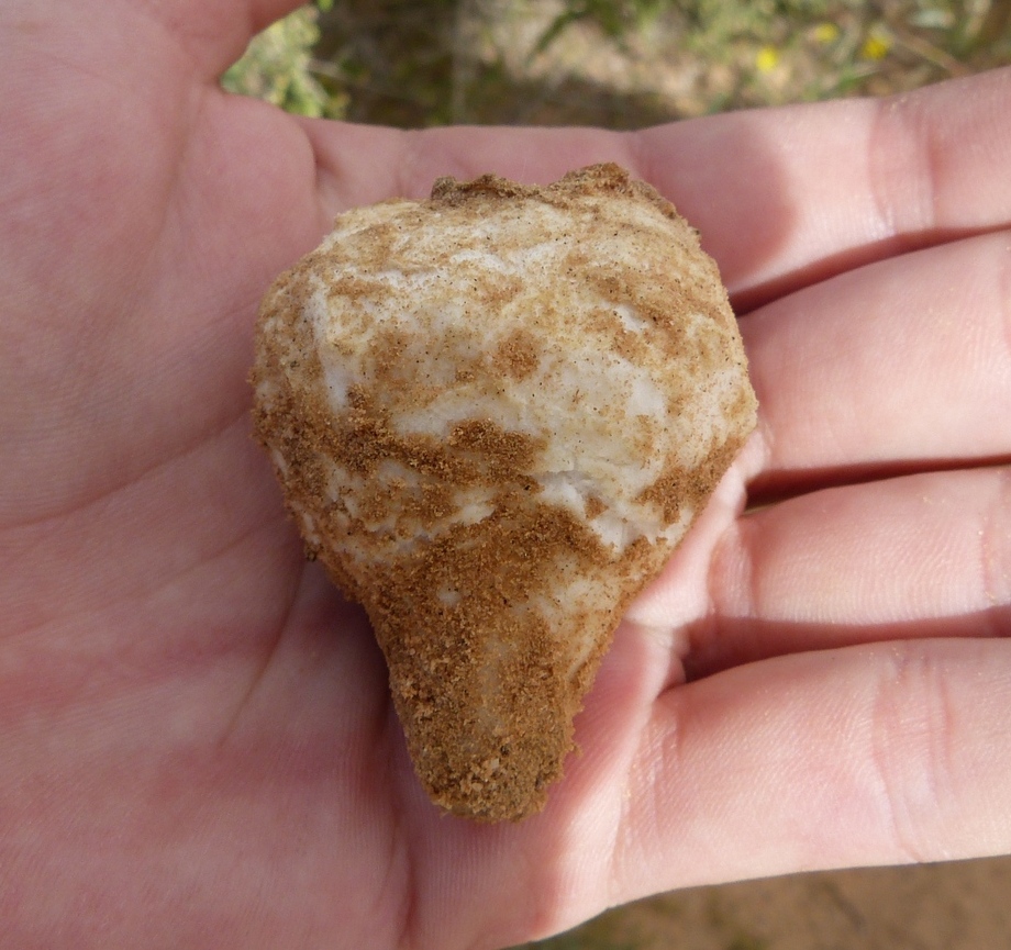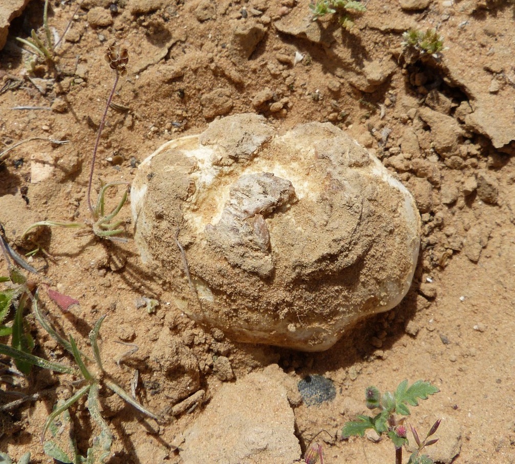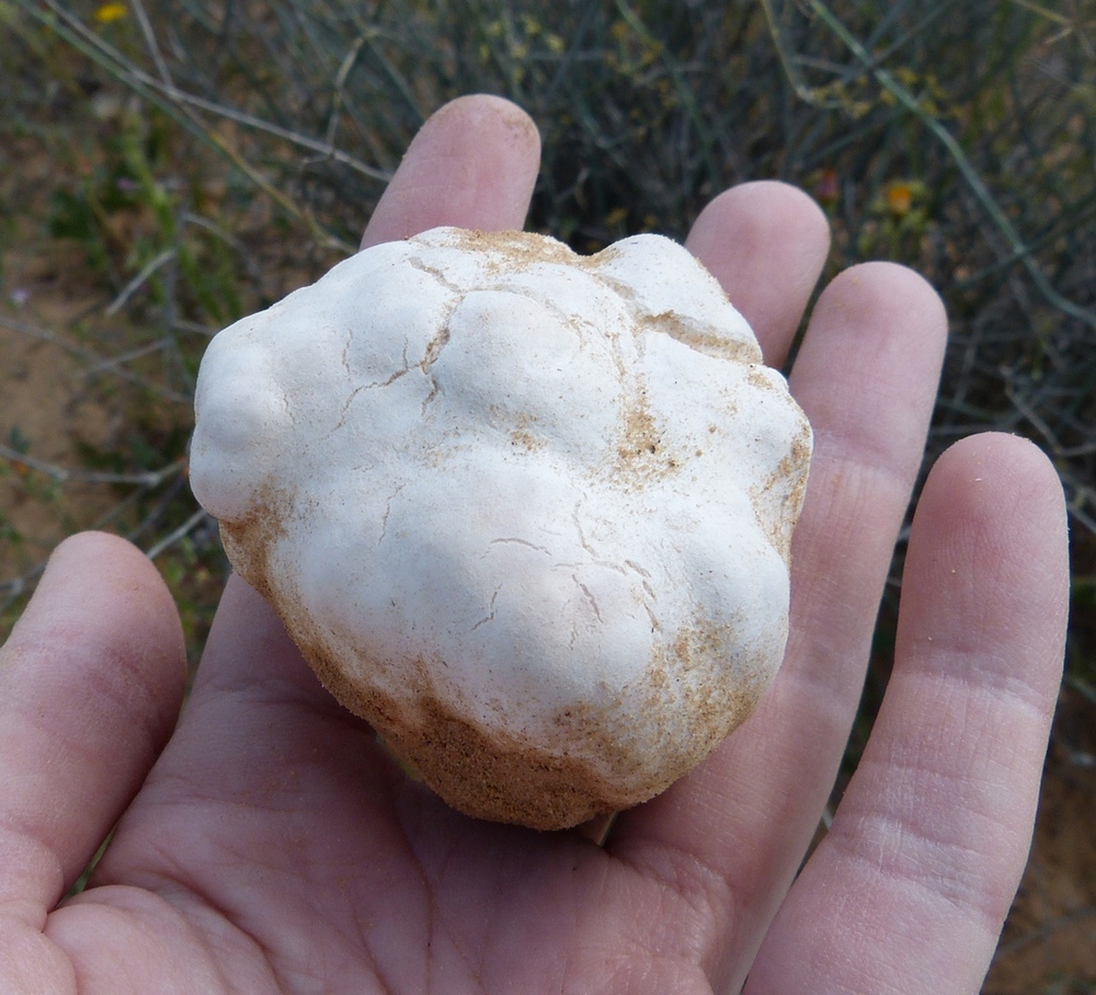 גוף הרביה דמוי פקעת תפוח-אדמה, עגול, פחוס או אגסי, קוטרו 6-12 ס"מ, המעטה חלק, צבעו לבנבן או לבנבן-צהבהב, קרם-לבנבן, קרם. בחשיפה לאוויר, בעת הוצאתו מהאדמה, הופך צהבהב.