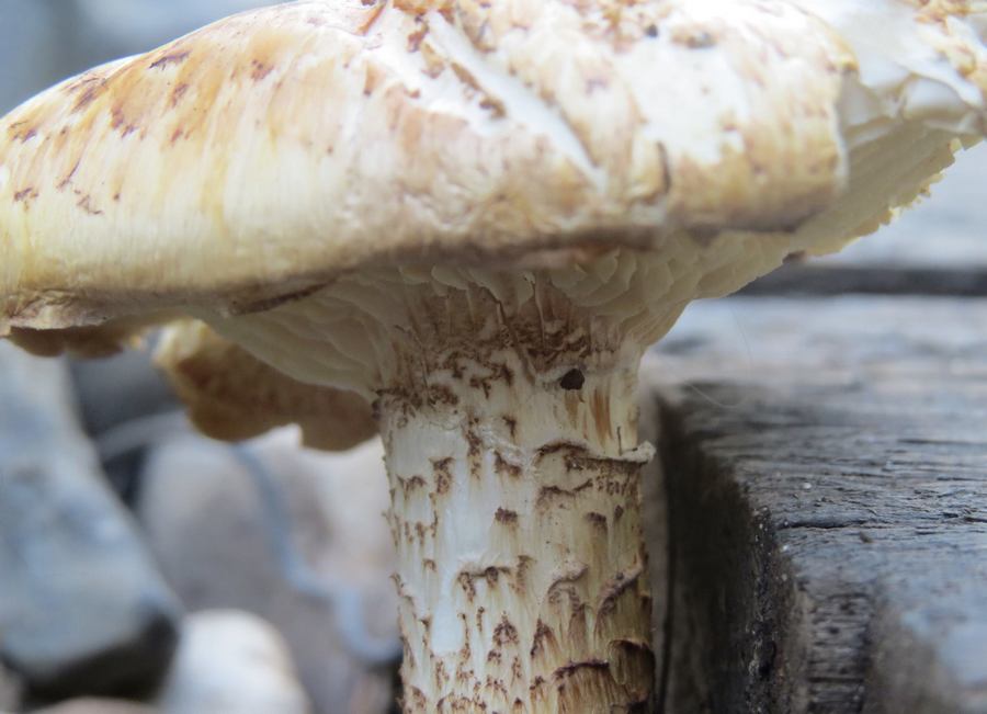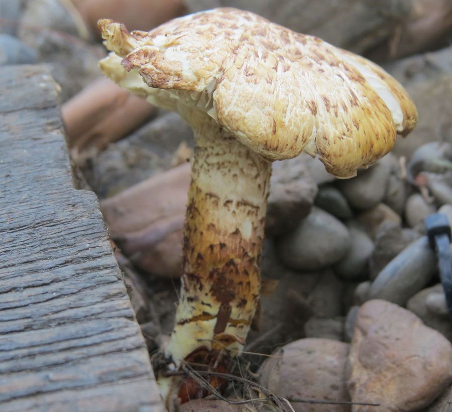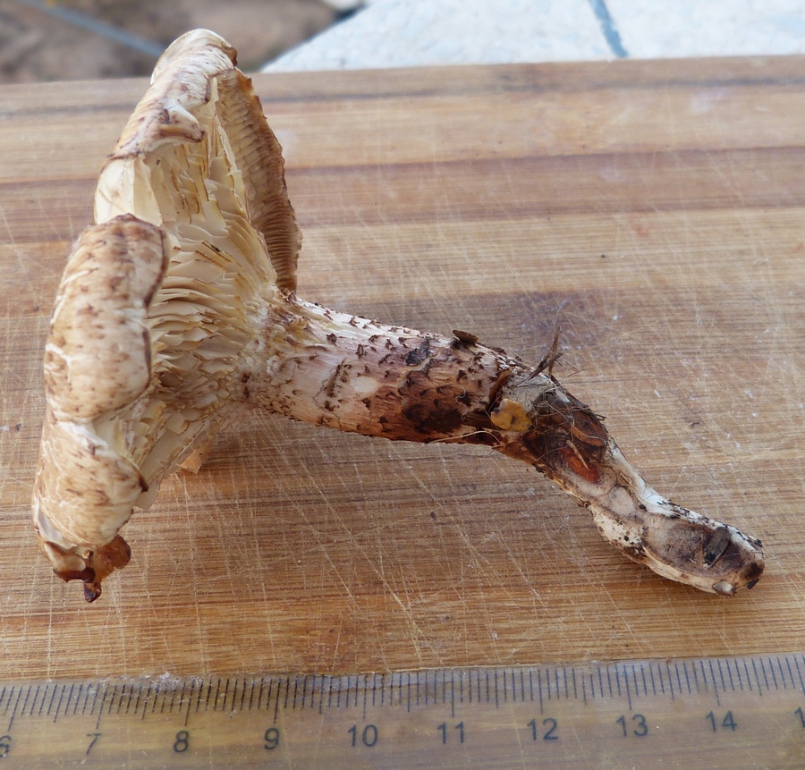 הרגל מרכזית או שלא נמצאת ממש במרכז, גלילית, ישרה או עקומה, הולכת צרה כלפי מטה או תפוחה ומעובה בבסיס, גובהה מגיע ל-8-10 ס"מ, עוביה ל-1-2 ס"מ, בגיל צעיר מאוד ניתן לצפות על פני הרגל טבעת גבוהה וקרומית, אשר נעלמת מהר. פני הרגל מכוסים בקשקשים ברורים וכהים, בצבע חום או חום-חלודי, על רקע בהיר יותר, בז' או לבנבן. בסיס הרגל בדרך כלל יותר כהה, חום-חלודי, עם הזמן הרגל כולה הופכת להיות כהה יותר.