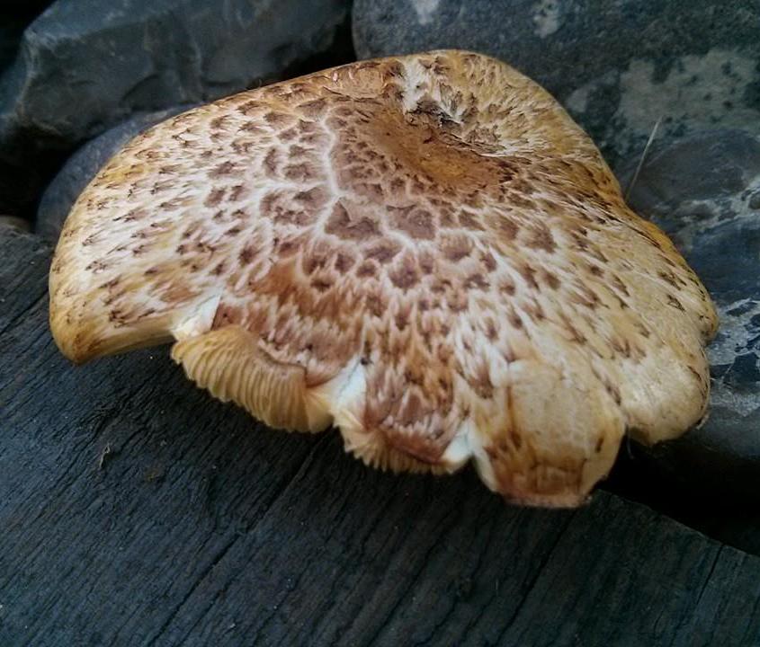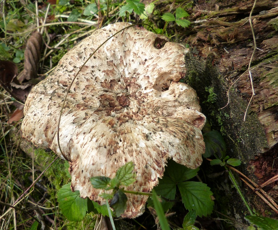 הכובע מגיע לגודל של-10-15 ס"מ בקוטרו ואפילו יותר, בתחילה קמור ונעשה קמור-שטוח או שטוח, לעיתים פחוס או שקוע במקצת במרכזו. צבעו בז'-צהבהב, חום-צהוב-בהיר, חום-בז' או חום-אפרפר-צהבהב. פניו מכוסים בקשקשים די גדולים, ברורים וכהים יחסית, בצבע חום-בהיר או חום, על רקע בהיר יותר, לבנבן או בז'. הקשקשים צפופים יותר במרכז הכובע.